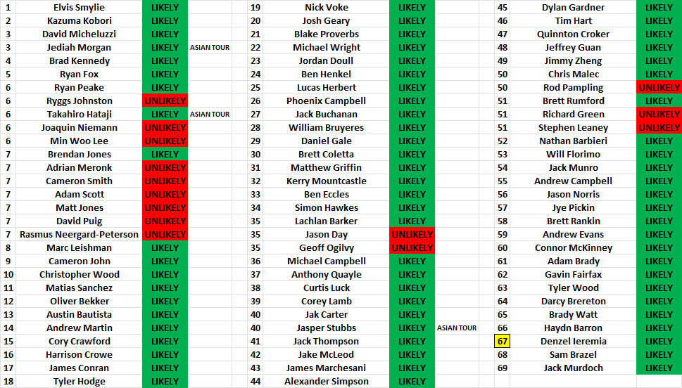 HOWEVER, I have included all these players in the “LIKELY” list as I want to be conservative. If a player entered the NZ Open last year I have included them as likely for this year.